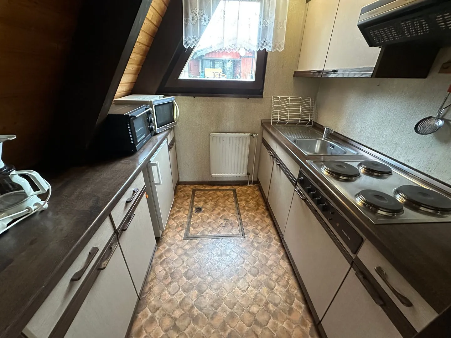 Im Haus gibt es ein großes Wohnzimmer mit SAT-TV, Couch und Esstisch mit Stühlen. Direkt daran schließt sich die Küche an, die die Zubereitung von leckeren Speisen einfach macht. In der Küche befinden sich unter anderem Kaffeemaschine, Wasserkocher, Geschirr, Minibackofen, Mikrowelle und ein Herd.
