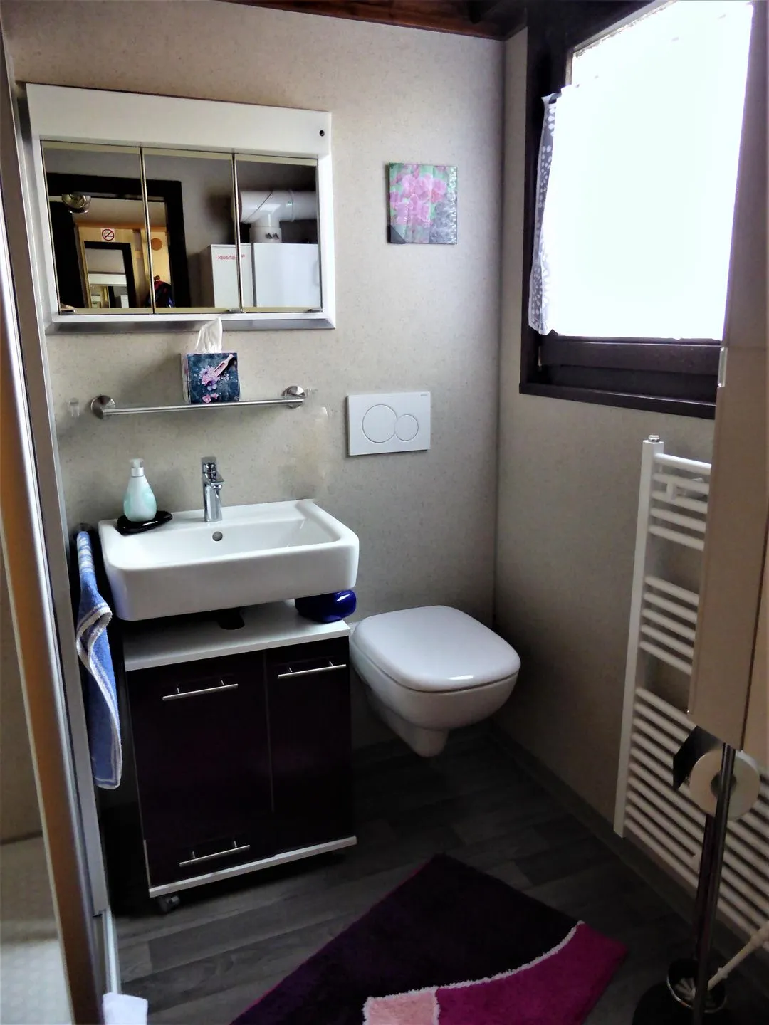 Das Badezimmer (erneuert 2019) bietet eine bequemen Dusche und ein modernes WC/Waschbecken.