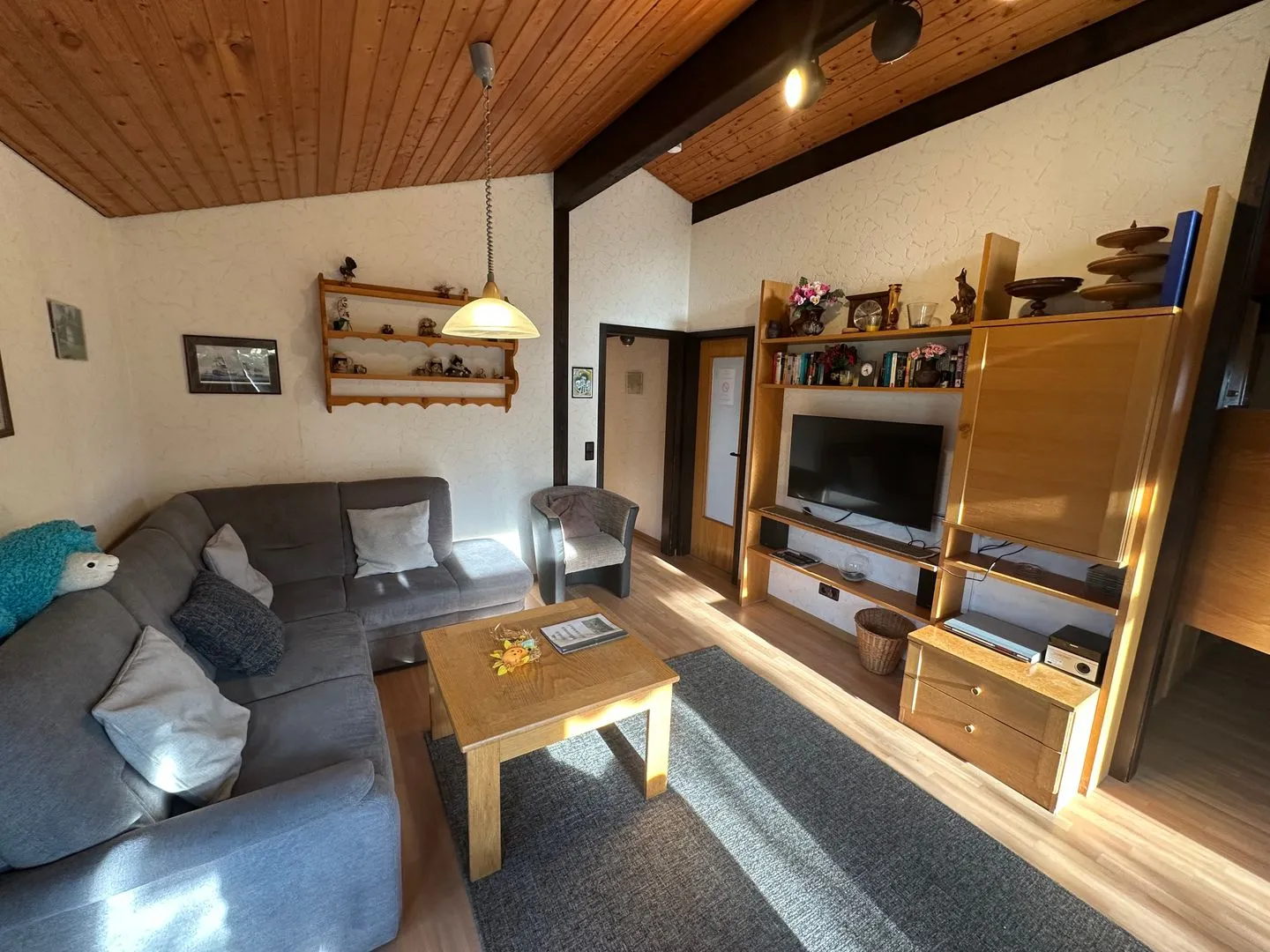 Im vorderen Bereich des Hauses gibt es ein großes Wohnzimmer mit SAT-TV und Couch, das modern und hell ausgestattet ist.