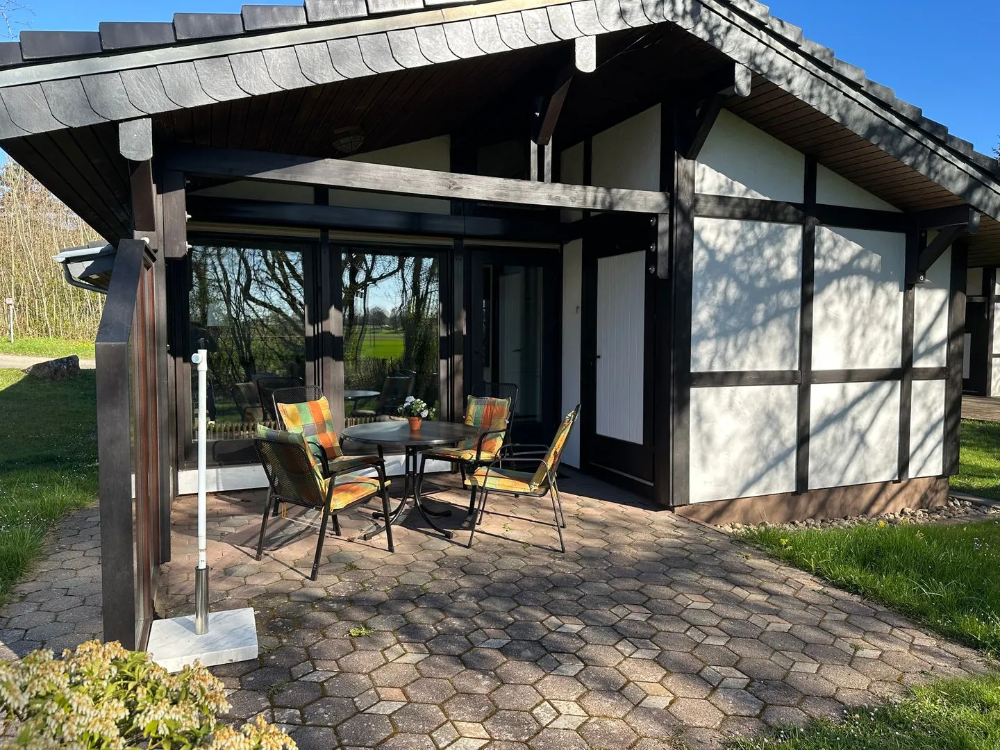 Ein Privatparkplatz direkt am Haus steht Ihnen nicht zur Verfügung. Das Fahrzeug darf während des Be- und Entladens am Ferienhaus geparkt werden, danach bitte das Fahrzeug auf dem großen Parkplatz im Feriendorf abstellen.