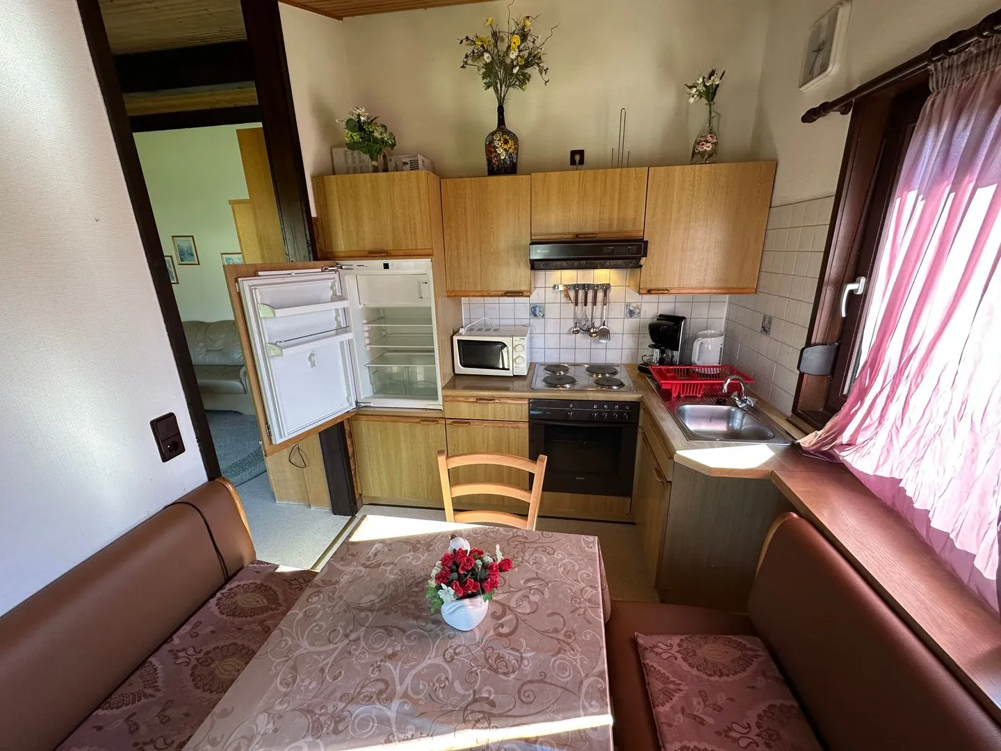 Das Ferienhaus bietet bis zu vier Personen Platz und verfügt über ein Wohnzimmer mit SAT-TV und gemütlichen Sitzgelegenheiten.